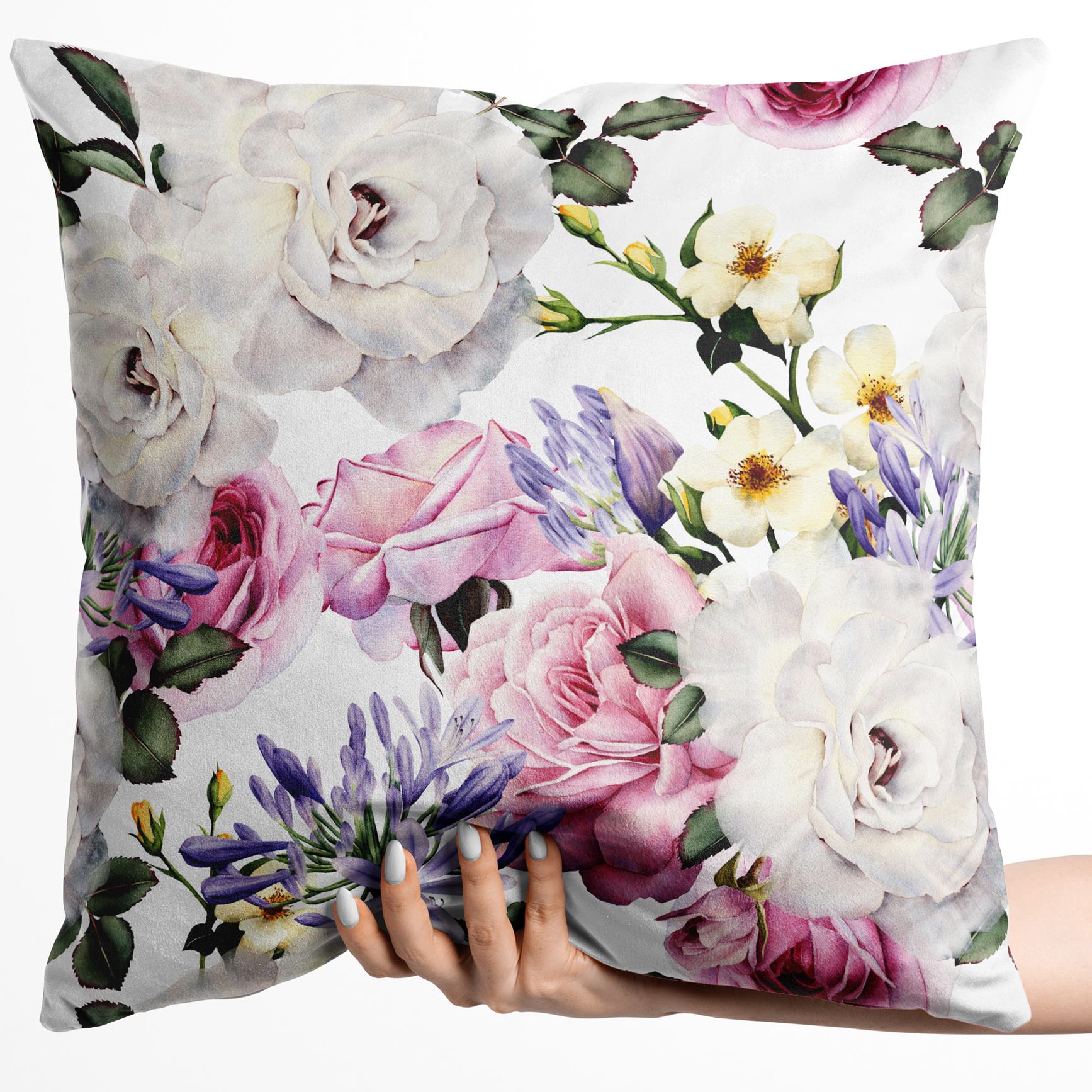 Welwetowa poszewka dekoracyjna z kwiatowym nadrukiem 45x45