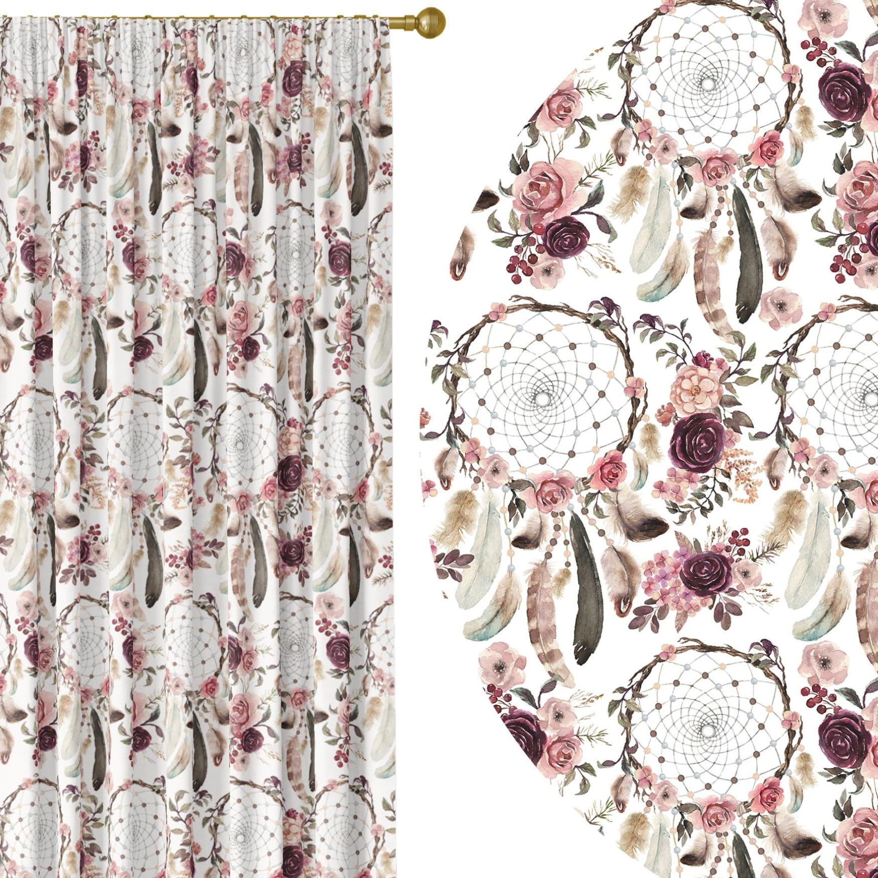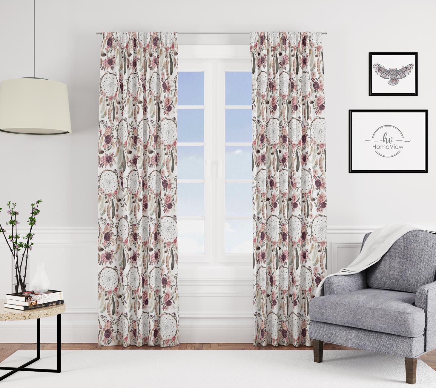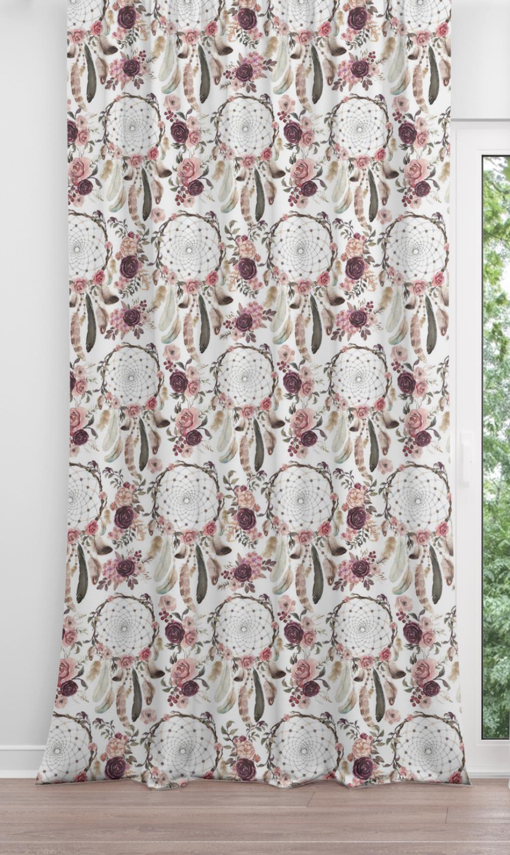 Zasłona półzaciemniająca z motywem boho, 140x250 cm, na taśmie